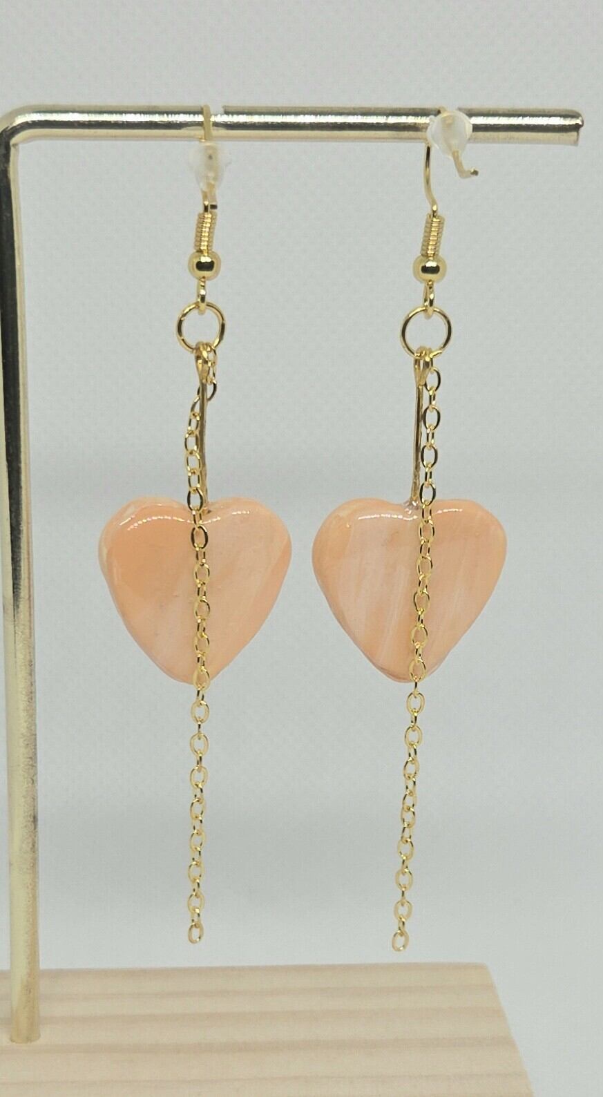 可愛らしいハートが揺れるハートピアス(ライトオレンジ)!
