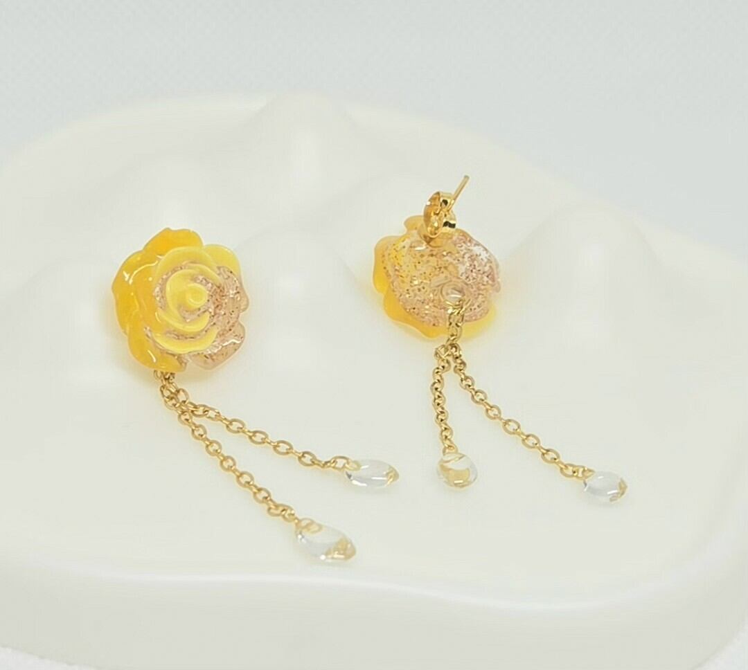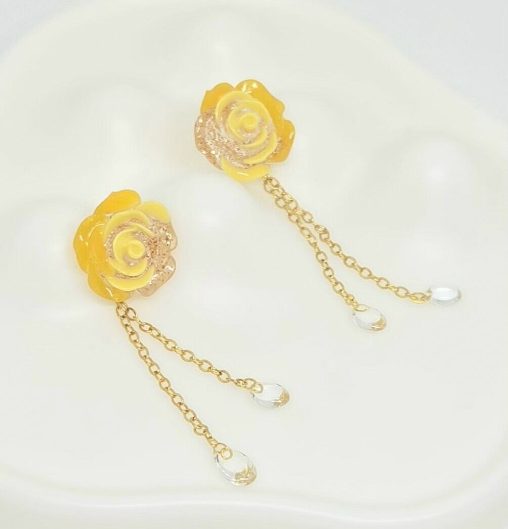 揺れるチェーンが魅力的なバラピアス(イエロー)!